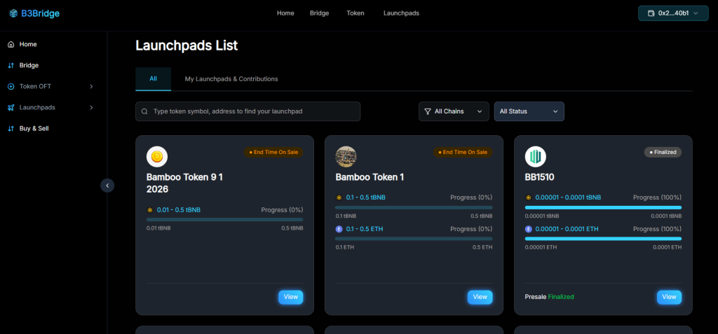 A key differentiator of B3 Launchpad is its multichain fundraising capability. Startups can run presales across multiple blockchains supported by B3Bridge, rather than being confined to a single ecosystem.