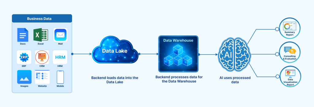 In most enterprises, data exists everywhere: ERP, CRM, HRM systems, emails, internal documents, Excel reports, websites, mobile applications, and even images and videos. However, this data is often distributed across multiple systems, inconsistent in format, and difficult to consolidate into a comprehensive view.