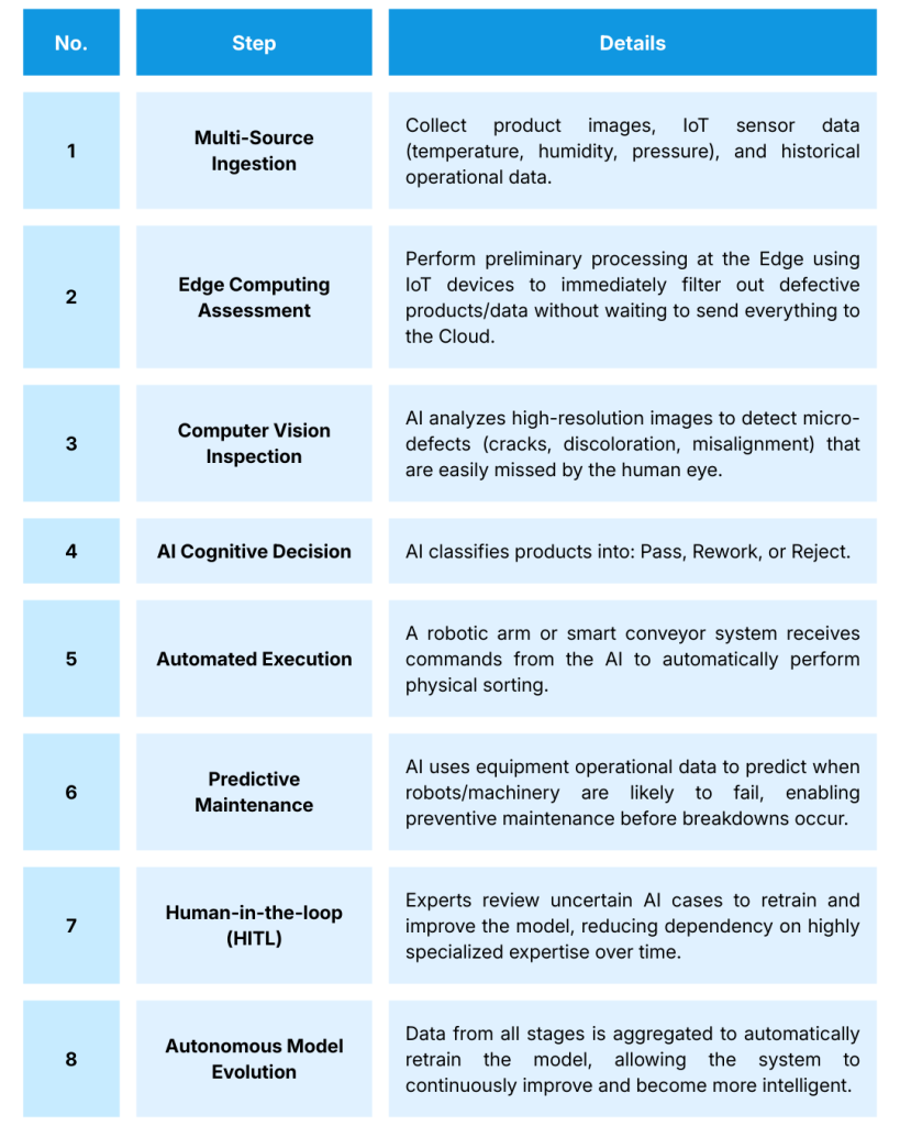 In manufacturing environments, AI architecture often includes multiple tightly integrated steps.